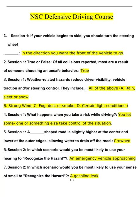 Read Online answer key to defensive driving course Reader