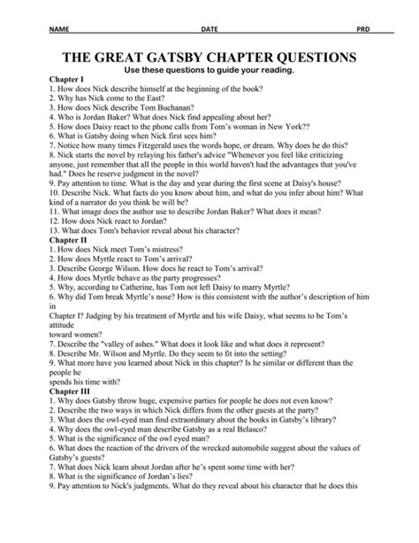 Read The Great Gatsby Questions And Answers Chapter 9 Reader